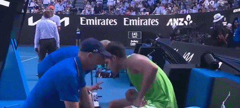 前两盘阿尔卡拉斯总比分2-0领先,到了第3盘,阿尔卡拉斯在5-4领先时出现受伤状况,申请医疗暂停。