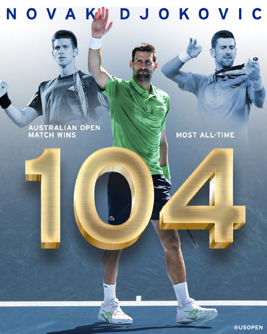 三栖百胜唯一神:此前他已在澳网、法网(101胜)、温网(102胜)均达成单一大满贯百胜,成为史上唯一在三种场地大满贯彻底制霸的球员。
