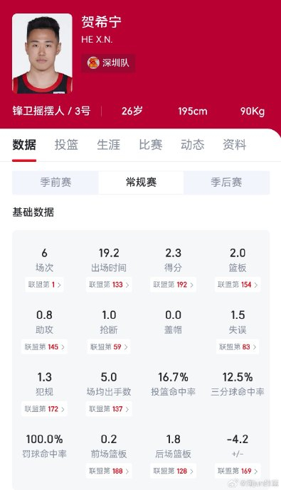市场供需关系:贺希宁已成为自由球员市场上的“大鱼”。据媒体报道,即使在赛季中期,已有包括山东高速、新疆广汇在内的多支球队对其表现出浓厚兴趣。深圳队虽拥有顶薪续约优先权,但多家豪强的竞价势必会推高其市场价值。媒体和球迷已在热议“想得到他,得多少个w?”,侧面印证其身价看涨。