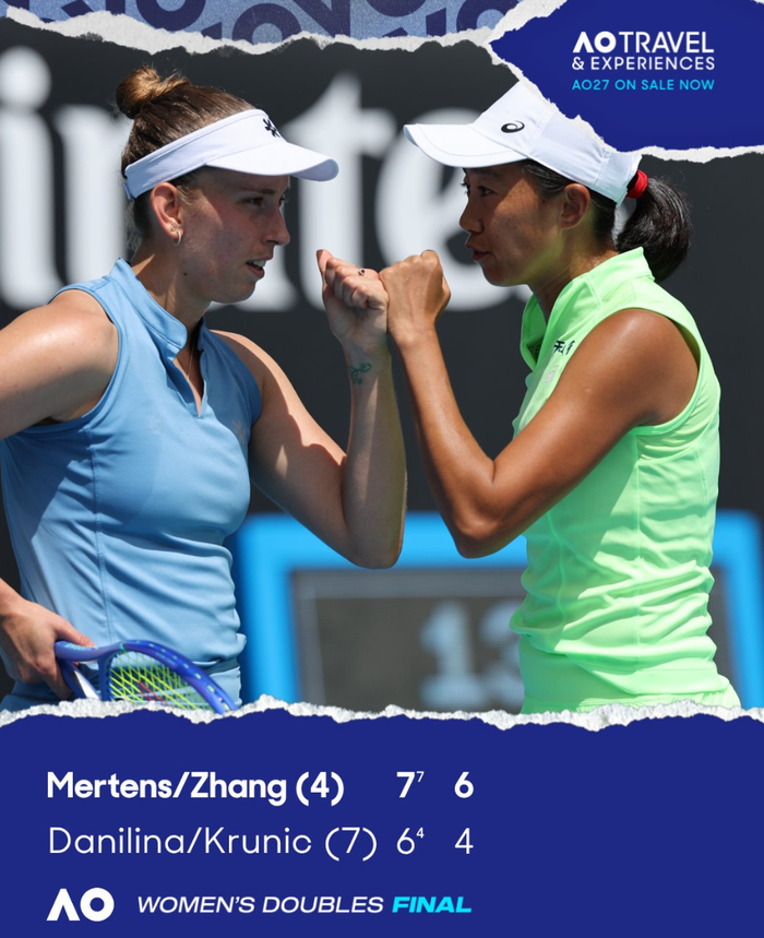 这场澳网女双冠军对于37岁的张帅来说真的非常不容易,这是她时隔7年来说再度澳网女双登顶,也是张帅搭档梅尔滕斯的首个大满贯女双冠军,张帅也完成了职业生涯大满贯女双第三个冠军。梅尔滕斯拿到澳网第三冠+大满贯第六冠。