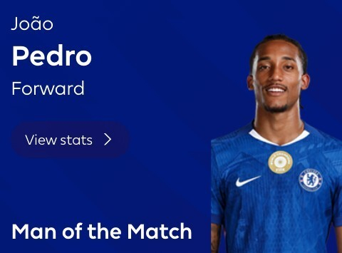 替补传射,若昂-佩德罗当选切尔西vs西汉姆全场最佳球员