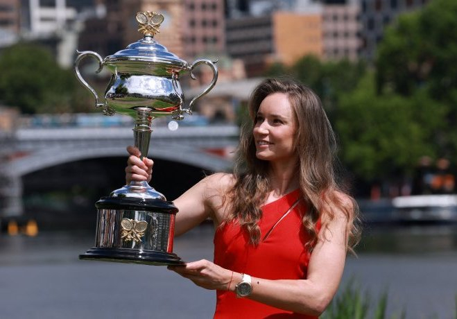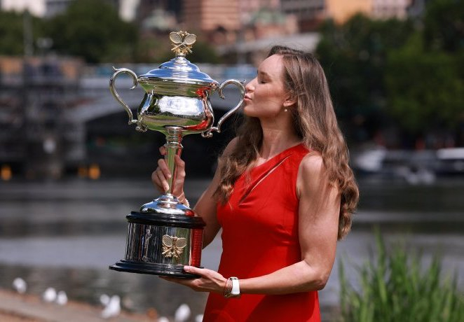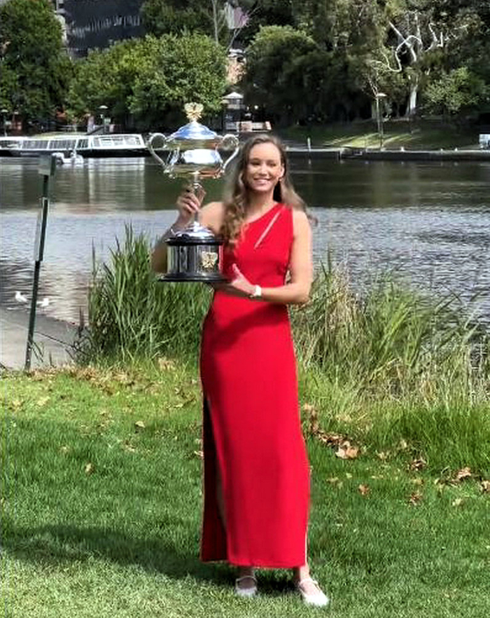 而夺冠的莱巴金娜尽管有宠辱不惊的“冷美人”之称,但是拿到这个冠军之后也是十分开心。今天,她还身着红色长裙,手捧达芙妮冠军杯,在墨尔本拍摄了冠军写真,可谓美艳动人。我们一起来欣赏一下组图。