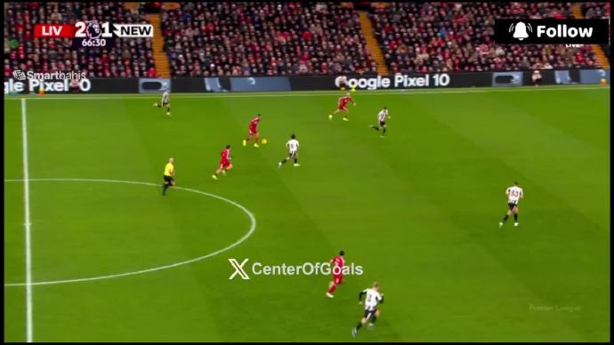 闪电逆转:纽卡由戈登第36分钟首开记录,但利物浦5分钟内由埃基蒂克连入两球反超,维尔茨第67分钟低射锁定胜局。