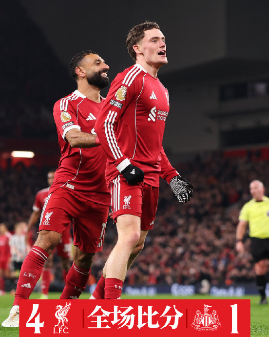 在2025-26赛季英超第24轮焦点战中,利物浦主场4-1逆转纽卡斯尔,终结联赛五轮不胜。埃基蒂克梅开二度,维尔茨传射建功,科纳特补时破门后情绪崩溃,戈登为纽卡首开记录却难阻败局。