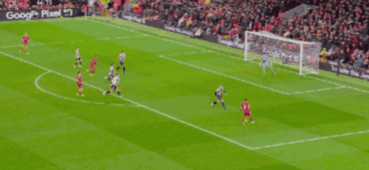 比赛开打第12分钟,利物浦戈登飞铲阿利森被主裁判黄牌警告,6分钟之后,埃基蒂克大禁区前沿突施冷箭,被纽卡门将稳稳抱在怀中,第26分钟纽卡战术任意球打门,可惜运气不佳,巴恩斯的射门被门框拒绝,不过在第36分钟戈登还是在禁区右侧,用一脚低射,帮助纽卡取得了1-0的领先。