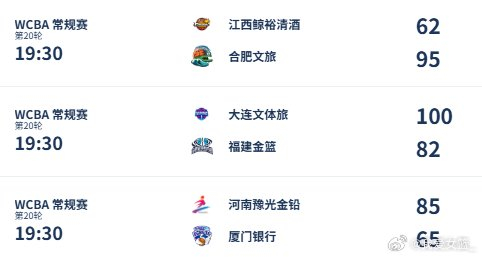 大连文体旅 100-82 福建金篮,戴雅-库珀39分,麦伊莎-阿伦24分14篮板7助攻。福建女篮林心怡20分,谭如梦15分,赵婧如11分,杨蕊11分 7助攻,徐婷婷11分8篮板。