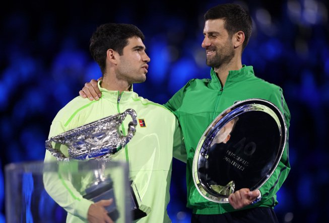 北京时间昨晚,2026澳大利亚网球公开赛精彩落幕。在最后的男单终极决战中,4号种子、赛会十冠王德约科维奇在6-2轻取首盘的情况下,被头号种子、世界第一阿尔卡拉斯以6-2 6-3 7-5连下三盘逆转,无缘大满贯第25冠。