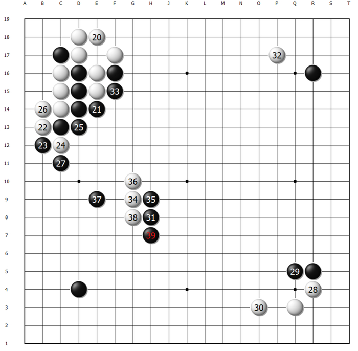 这盘棋从布局阶段就展开了激烈的“空中战”。白30顺势引征,申旻埈直接补在H8位,强调自身发展。朴珉奎毫不示弱,白34强硬接战,逼迫黑棋补掉征子,双方不可避免地将迎来一场激战。