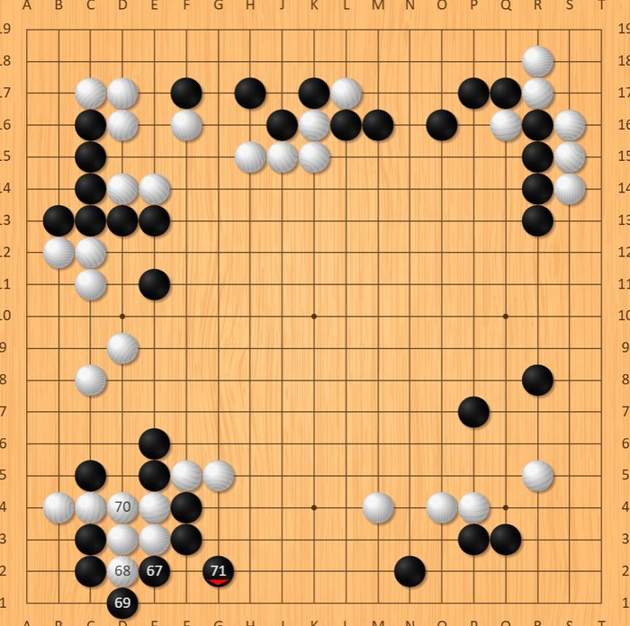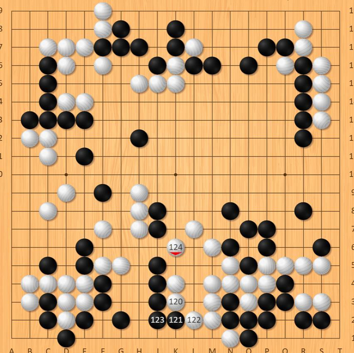 序盘布局结束后,双方迅速在边线与角落展开攻防较量。杨鼎新的白棋凭借细腻的行棋思路,在布局阶段便建立优势,让申真谞难以找到破局之法。右下区域的死活大战中,白棋在黑棋的紧逼下精准做活,筑牢防线的同时打乱黑棋部署。