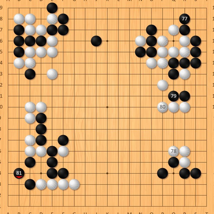 实战中,辜梓豪以黑棋错小目开局,序盘与朴廷桓在棋盘角落展开攻防拉锯,局势一度胶着。转折点出现在中盘,白棋80手后在右边频出缓手,未能及时进军中腹封盖黑棋、布局势力,反而深陷局部纠缠,让辜梓豪轻松扩大领先。