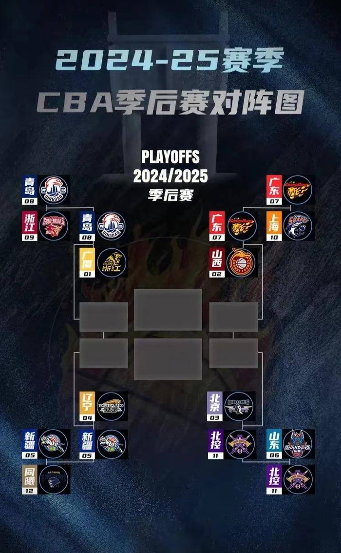根据官方公布的信息,1/4决赛采用五战三胜制(2-2-1赛制),常规赛排名靠前的球队拥有多一个主场的优势。具体赛程如下: