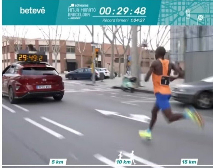 利用汽车尾流获益!半马56分42秒惊为天人世界纪录未被认定