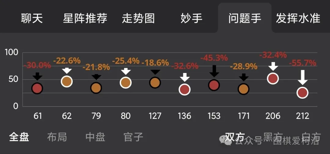 但顶尖对决的胜负往往藏在毫厘之间,中腹对抗阶段,丁浩在优势下的细微迟疑给了对手可乘之机——黑棋135手精准挖断后,井山裕太抓住白棋粘向左边的破绽,果断抢占右边实地,读秒中完成胜率飙升至80%的惊天逆转。黑棋