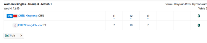 陈幸同作为国乒女队的主力之一,她这场首秀的发挥也较为稳定,她3-0横扫简彤娟,三局比分:11-7、12-10、11-7,就第二局打得有些胶着。