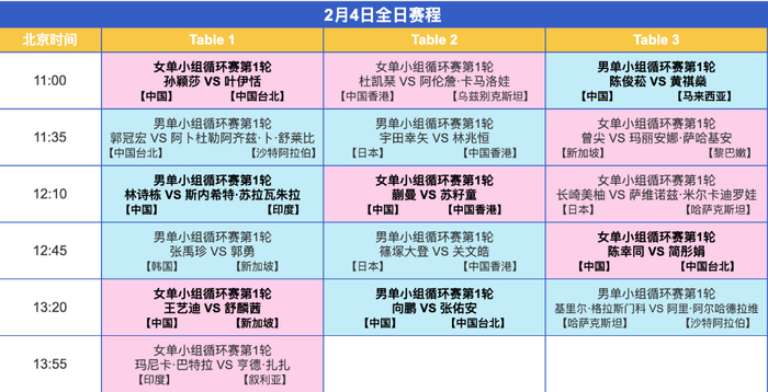 北京时间2月4日,2026年乒乓球亚洲杯进入首个比赛日,早上11点开打的比赛-13点20分上午的比赛就告一段落,下一个比赛时间是从18点35分打响,这第一阶段的循环赛国乒发挥的非常稳定,已经豪取7连胜。
