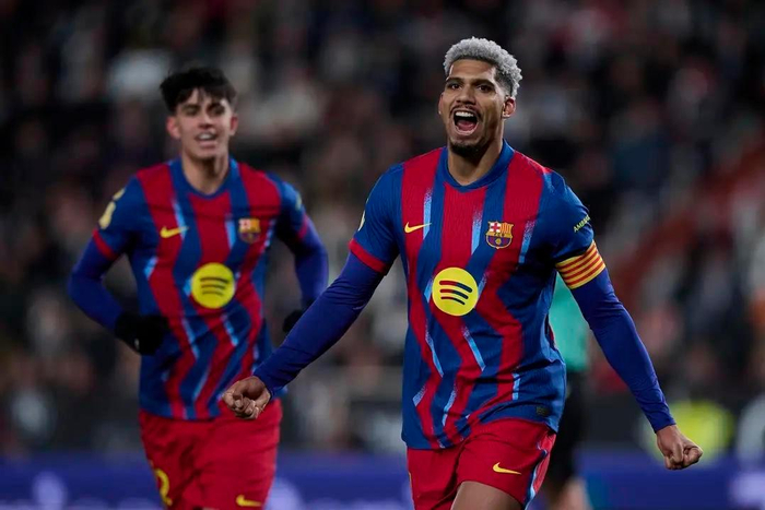 易边再战,巴萨乘胜追击。第56分钟,中卫罗纳德·阿劳霍接角球高高跃起,一记势大力沉的头槌将比分扩大为2:0。