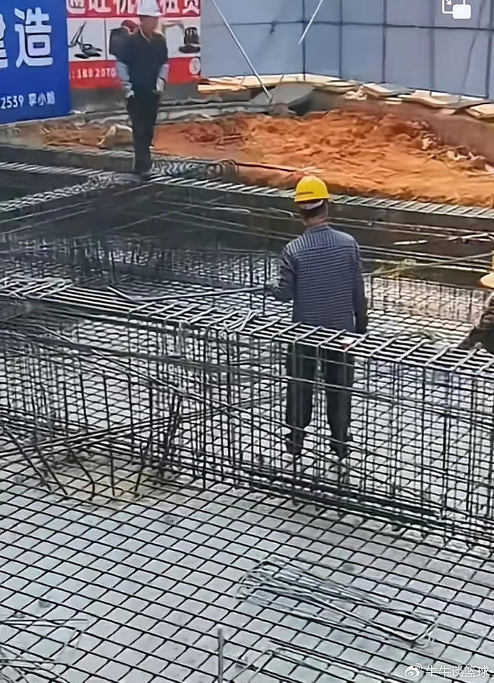 全红婵家新房子地基太牢固,钢筋全部铺满,全爸现场当监工