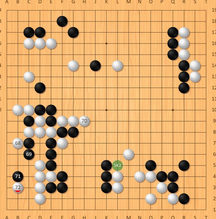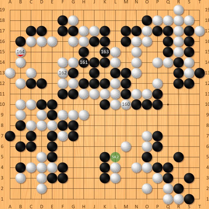 此时朴廷桓若集中火力猛攻右上(图1),本可收割中腹势力锁定胜局,却错失关键胜招。廖元赫乘胜追击,稳步将中下与中腹势力转化为实地,彻底锁定优势。深知翻盘无望的朴廷桓并未恋战,坦然投子认负。(1.28完)