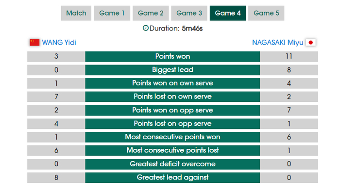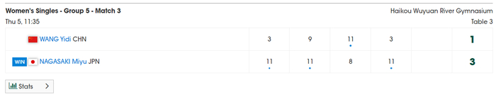 长崎美柚在拿下胜利后直接握拳怒吼,王艺迪的背影显得非常落幕。此役后王艺迪1胜1负,她第三场循环赛的对手是米尔卡迪罗娃,下一场比赛王艺迪不容有失。