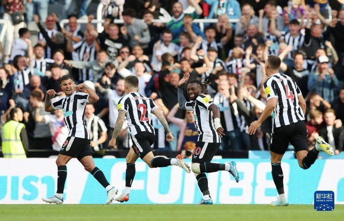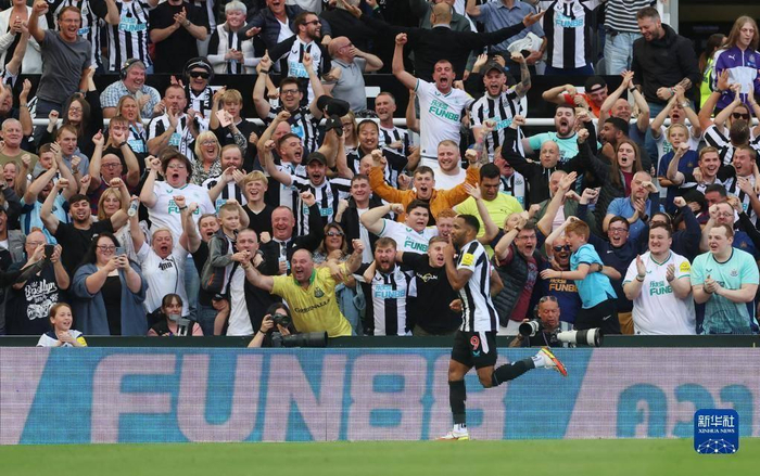 8月21日, 纽卡斯尔联队球员在比赛中庆祝进球。