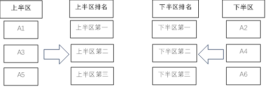 通过以下办法确认各组内上、下半区球队排名: