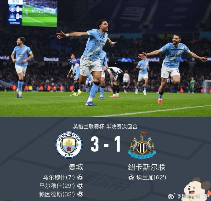 伊蒂哈德球场的记分牌定格在3-1——曼城以一场行云流水的胜利,将两回合总比分锁定为5-1,时隔五年再度挺进英联杯决赛,与阿森纳会师温布利之巅。