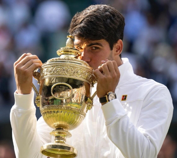 打破费德勒、纳达尔、德约科维奇、穆雷四巨头对温网冠军长达20年垄断的选手。2023年温网,阿尔卡拉斯挟伦敦女王杯夺冠之势,一举闯进最后的决赛,并且历经五盘大战,逆转战胜了七届温网冠军德约科维奇,终结了德约科维奇温网34连胜和温网中心球球十年不败的辉煌。阿尔卡拉斯2023年温网夺冠,打破了费德勒、纳达尔、德约科维奇、穆雷自2003年起对温网冠军长达20年的垄断。
