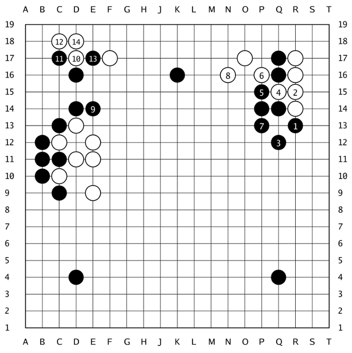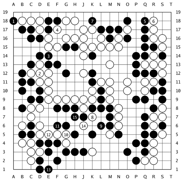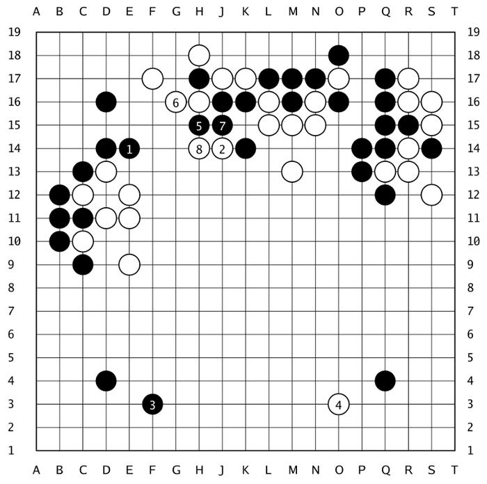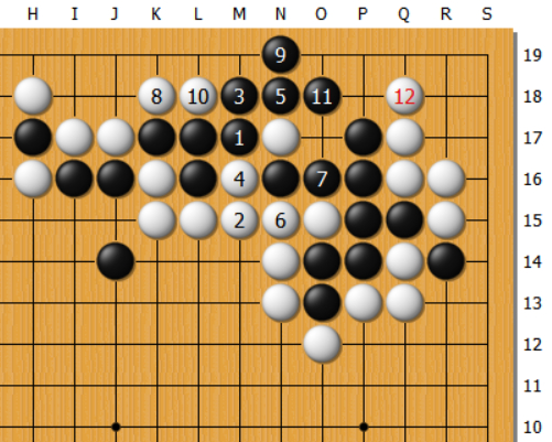 推演图如上。白棋被分割,没实战那么舒展,目差也缩小近8目。黑棋也不憋屈了。