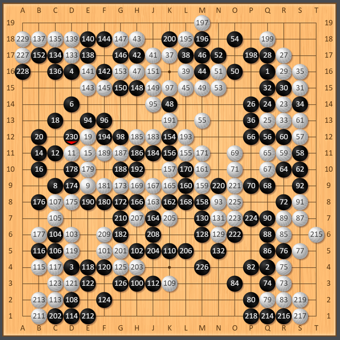 最终我提掉两子,双活,赢下了此局。全局棋谱如下: