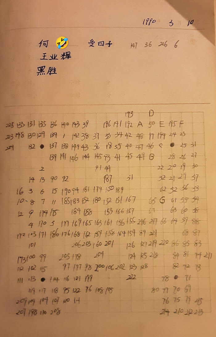 印象里我输了无数次,那些挫败感盖过了赢的记忆。有没有赢过?却记不清了。直到翻出记谱本,竟发现有一局胜局,唯一的一次!喜出望外!