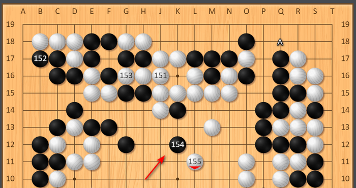 首先,黑154就是莫名其妙的一步,价值微小,还不如A位立大!王老也没多考虑,跟着我后面走了155手。