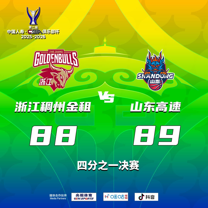 #CBA[超话]# #CBA俱乐部杯赛# 浙江稠州金租 88-89 山东高速#CBA杯山东男篮战胜浙江男篮#