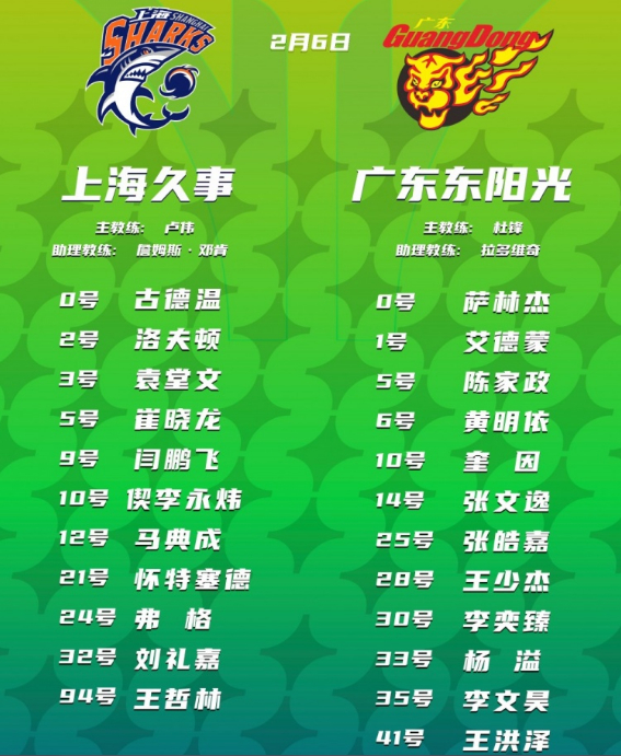 广东大外援萨林杰进入大名单,但并没有参加赛前训练,也没有登场比赛。
