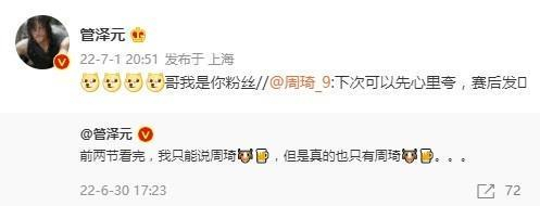 管泽元随后回复道:“哥我是你粉丝。”