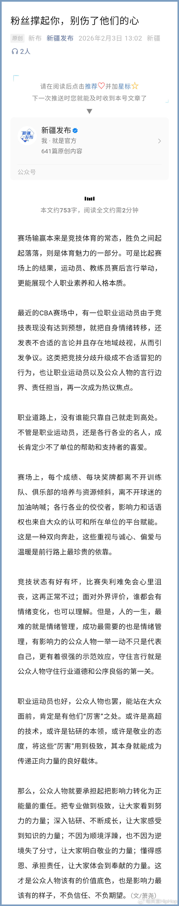 作为知名篮球运动员,他多次发布地域式评论,实在很不应该。