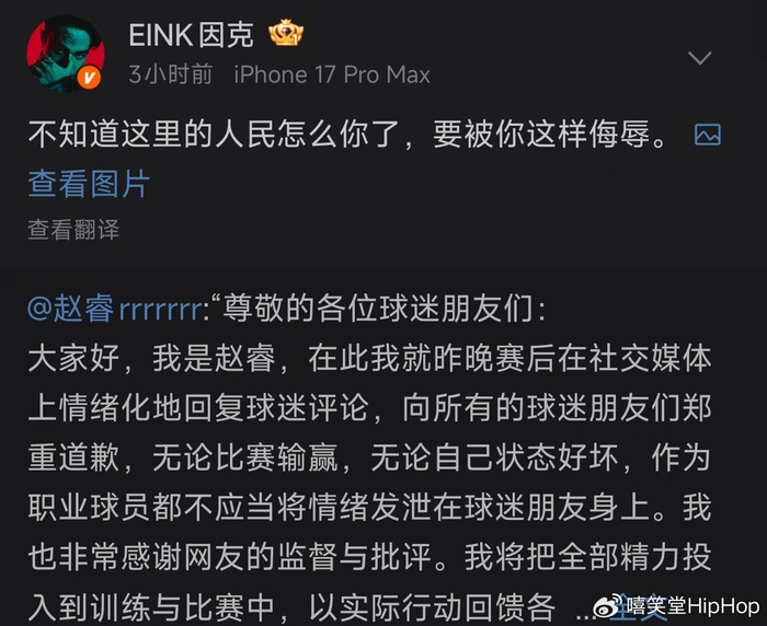 而说唱歌手EINK则已经公开发文回应。