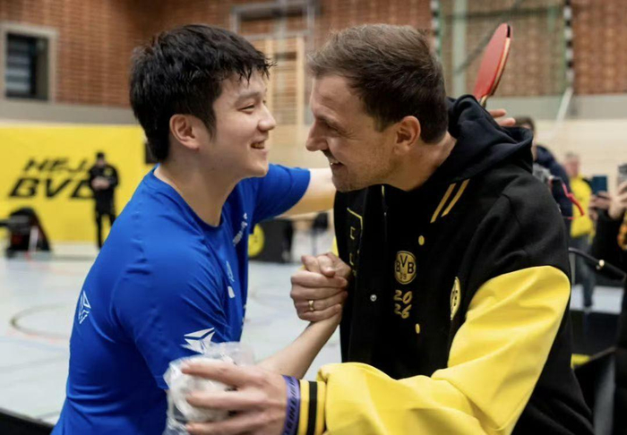 自从国乒奥运冠军樊振东外出打球,加盟萨尔布吕肯俱乐部以来,德甲和欧冠比赛的热度持续高升,后来又有更多的国乒队员参与,例如林高远、陈垣宇、周启豪、温瑞博等人,他们分别代表不同的俱乐部参赛,此前樊振东和队友弗朗西斯卡一起,为萨尔布吕肯拿到德国杯的男团冠军。
