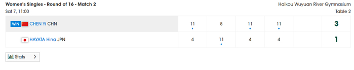 北京时间2月7日,2026年亚洲杯女单1/8决赛,陈熠(世界第八)以3-1击败早田希娜(世界第十)晋级八强,四局比分:11-4、8-11、11-4、11-4。