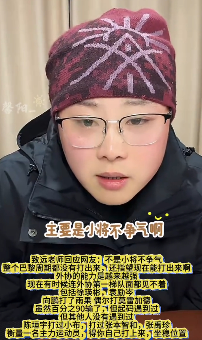 乒乓球解说员致远在直播间这样评价陈俊菘、陈垣宇被淘汰:不是小将们不争气,是整个巴黎周期都没有打出来,你们还指望他现在爆发打出来啊??