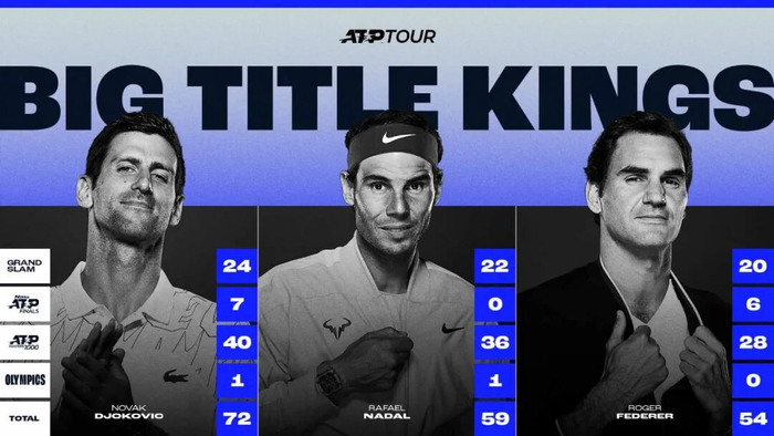 在几乎所有的数据统计方面,德约科维奇都领先于费德勒和纳达尔。以下是ATP官方制作的“三巨头”重大冠军统计图,这幅图大概是男子网坛重大纪录方面流传最广的图片。