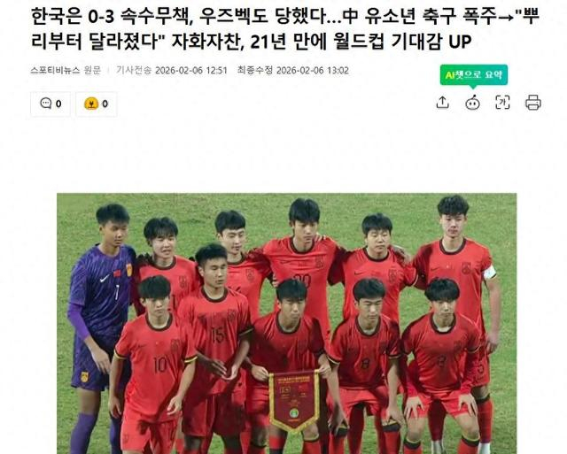 第一个,韩国媒体说中国男足在不到3周的时间里,已经连续3次战胜乌兹别克斯坦,包括本月浮嶋敏执教的U17国少2比0完胜乌兹别克,久尔杰维奇带领中国U19也以1比0的比分击败对手,再加上U23亚洲杯中国队淘汰乌兹别克,韩国媒体还回顾说,不仅新晋崛起的亚洲顶级强队乌兹别克斯坦输了,连传统强队韩国也已经多次被中国队击败,去年中国U22就先后2次赢下韩国,总比分3比0,韩国媒体感慨说:中国足球这一战绩意义非凡,竞技水平和 “根基” 都在稳步提升。