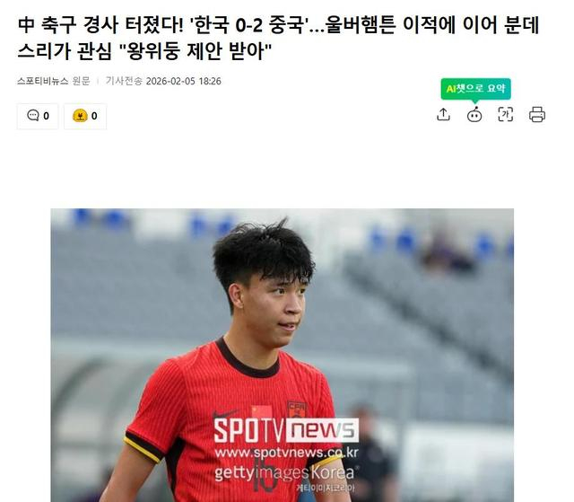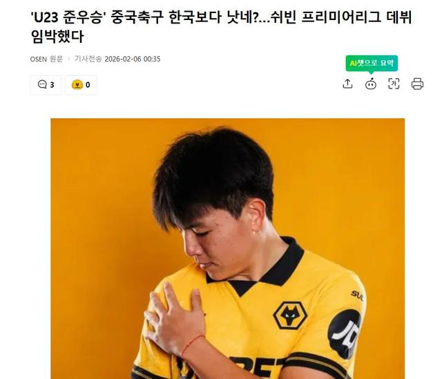 此外,韩国媒体还关注到另外2个中国足球的消息,徐彬即将迎来他在狼队U21的首秀,以及王钰栋收到德甲豪门的报价的传闻,认为这是中国足球在U23亚洲杯获得亚军后,迎来蓬勃发展的迹象,与韩国足球的低迷形成鲜明对比。