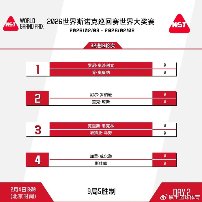 北京时间今天13点,第二轮进行,罗尼-奥沙利文登场,斯佳辉迎战加里-威尔逊,卫冕冠军尼尔-罗伯逊出战。19点,赵心童对阵约翰-希金斯,袁思俊迎战贾德-特鲁姆普,庞俊旭对战肖恩-墨菲,马克-艾伦出战。