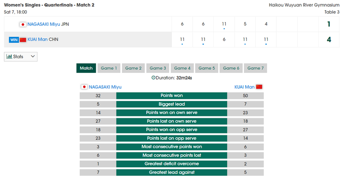 长崎美柚是以小组第一的身份晋级淘汰赛,王艺迪则是小组第二,进入1/8决赛,长崎美柚又3-2淘汰了日乒队友赤江夏星,看上去她的黑马之路是一片坦途,直到她遇上了天命克星蒯曼。