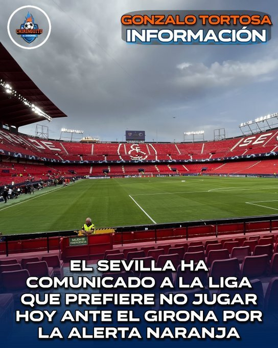 六台:当地暴雨橙色预警,塞维利亚向西甲申请推迟本轮比赛