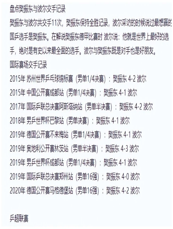 波尔曾拿到过两次世界杯男单金牌,可回望他的职业生涯,却从未赢过樊振东。