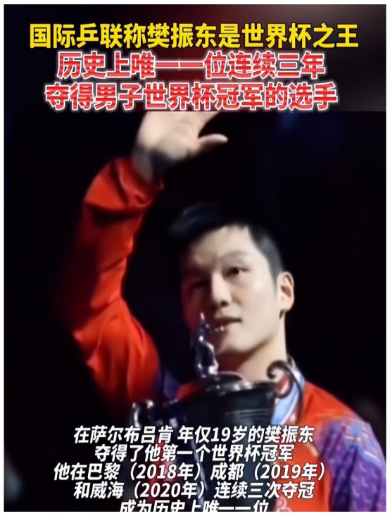他不止一次称赞过樊振东的实力,还直言这是他的偶像。