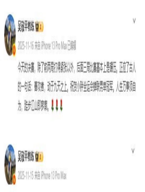 这份来自球迷、吴敬平、乃至各大官媒的集体祝福,绝非普通运动员能拥有的待遇。