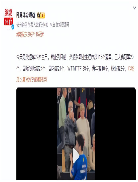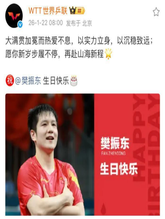 除了胜利的喜悦,樊振东当时还收获了众多球迷提前送来的生日祝福。