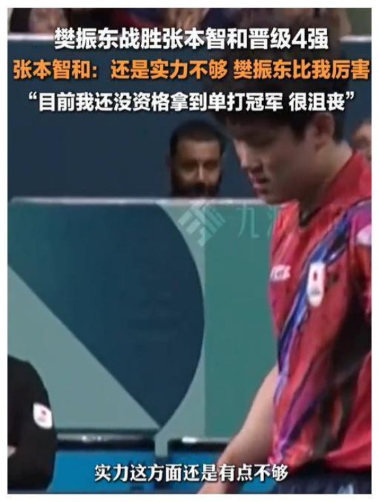 3比4输掉比赛后,张本智和也这样评价道: